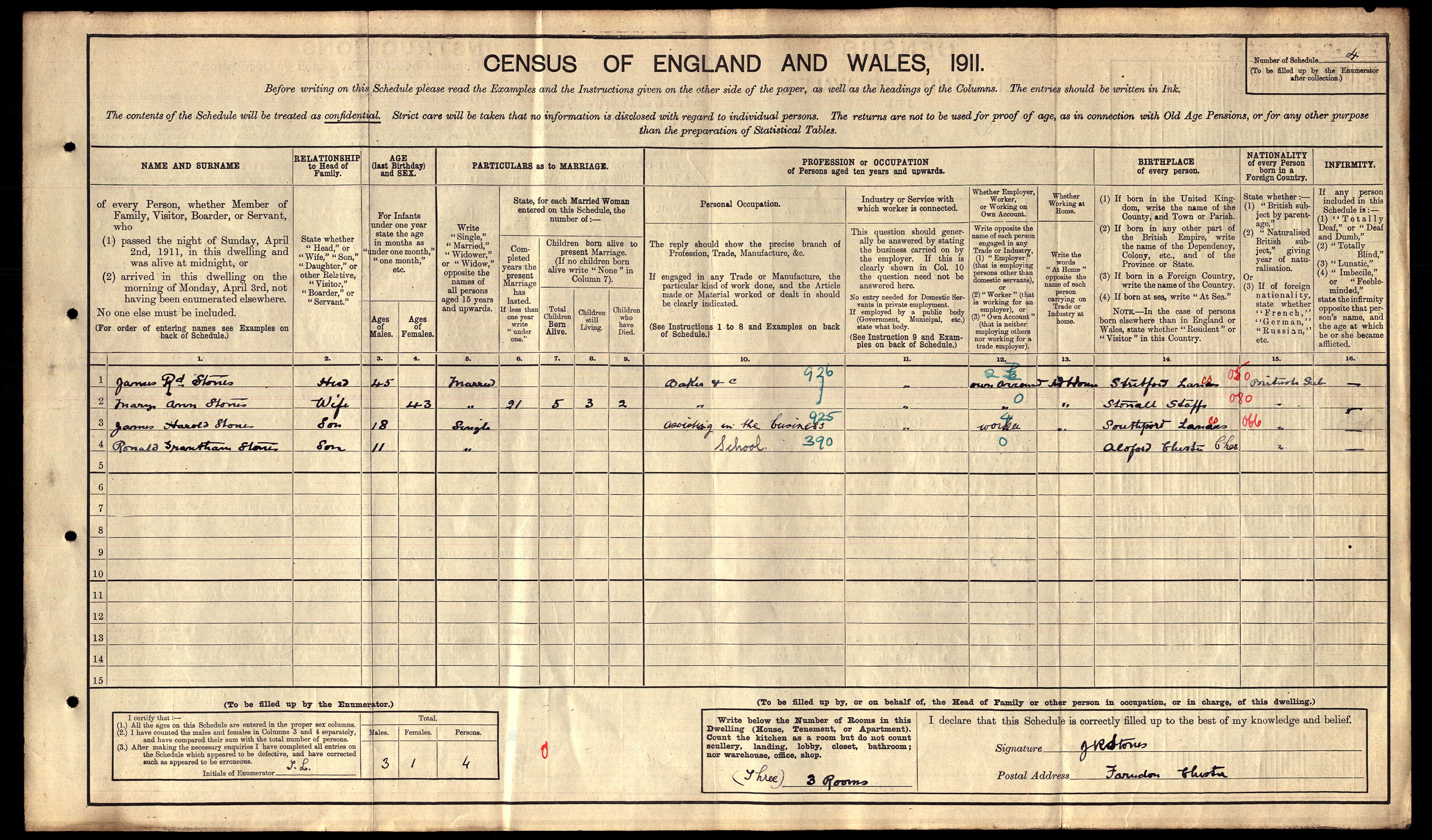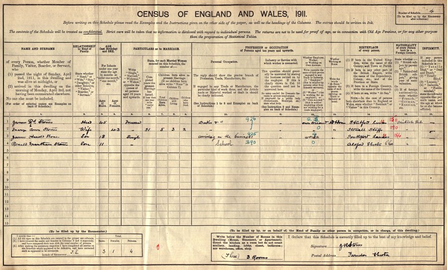 1911 Census - by which time the Stones family had moved in