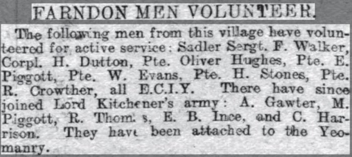 Henry Stones among the Farndon WW1 Volunteers
