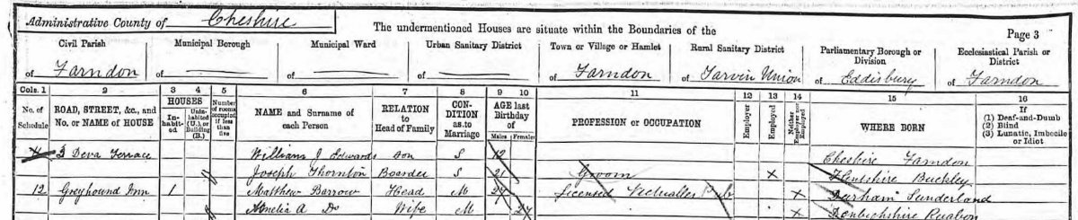 1891 Census - Matthew Barrow, Licenced Pub Victualler