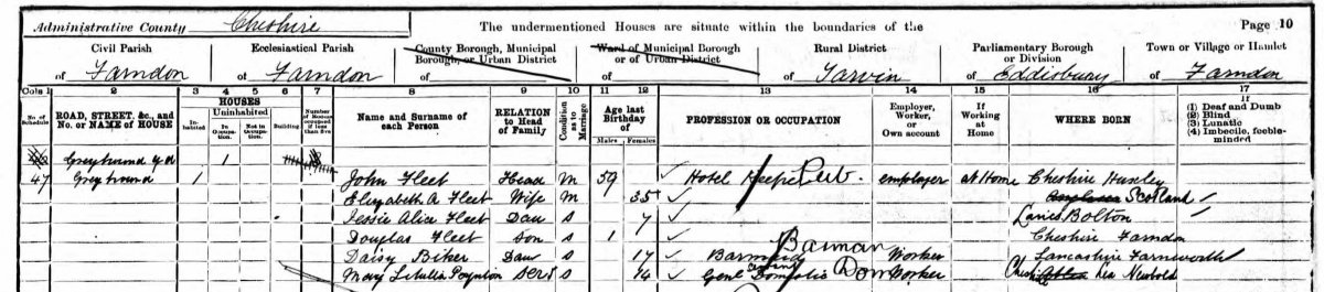 1901 Census - John Fleet, Hotel Keeper