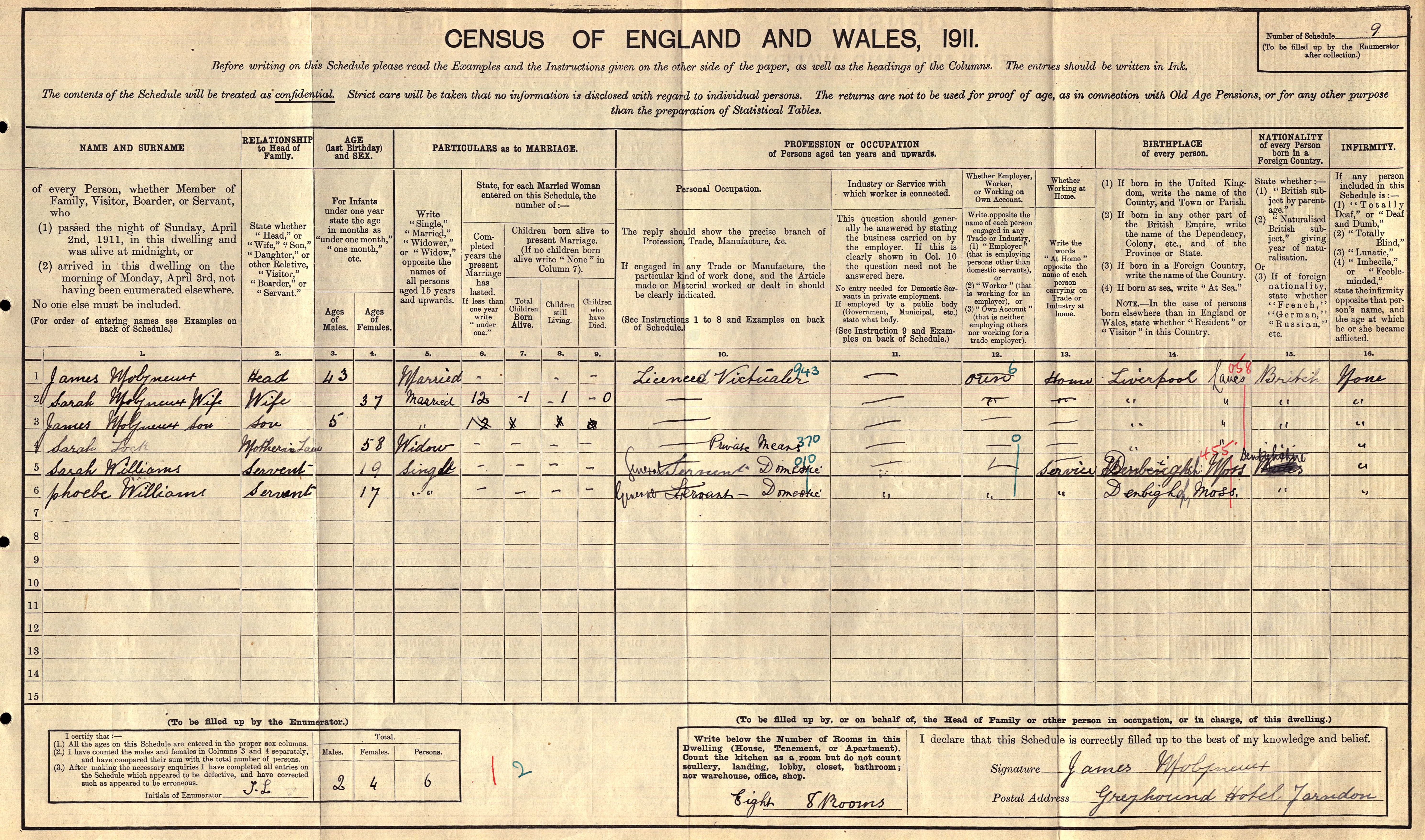 1911 Census - James Molyneux, Licensed victualler