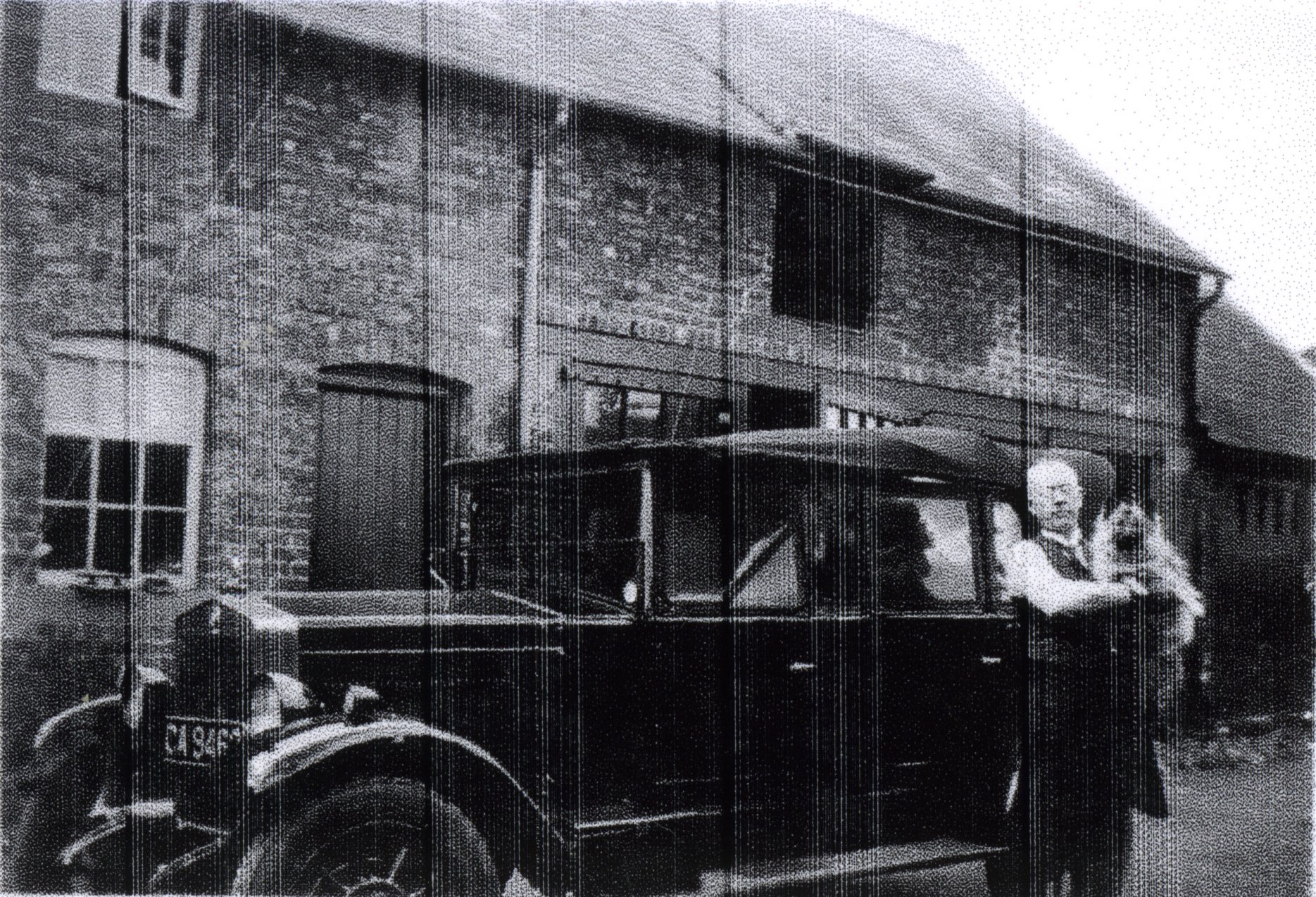 (Right) Edward Alexander Loughlin pictured in the rear of the Greyhound in front of the barn c.1931 His time in the village was short as he passed away in 1934, but made quite an impression on his time at the Greyhound, becoming committed to Farndon life and its people.