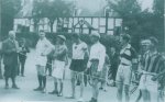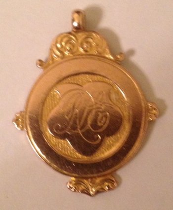 An unknown group of revellers, many wearing carnations, meeting outside the new Greyhound Inn c.1910 (could it be re-opening day?) The hats giving a clear indication of the mixing of social status and occupation At the end of the war the Greyhound hosted what was probably the most imortant event since the turn of the century, as all the men returning home were given gold medals by the people of the village and to the families of those who would not be returning. this medal was a token of thanks, and has become very rare. In fact, out of around one hundred awarded, only one is still known to exist, owned by David Evans of Holt, which was given to his grandfather, Private 45685 Robert Davies Evans of Crewe Lane, Farndon, born in 1895, who served with the 3rd Cheshire Regiment, and later as Private 64826 in the Machine Gun Corps. A special evening was organised to formally thank the men and to present their pendants, as this news article reveals;