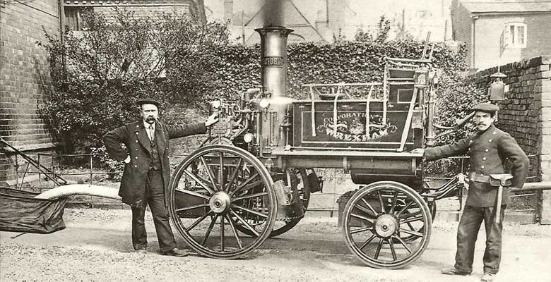 An example of a horse-drawn steam fire engine from the turn of the century.