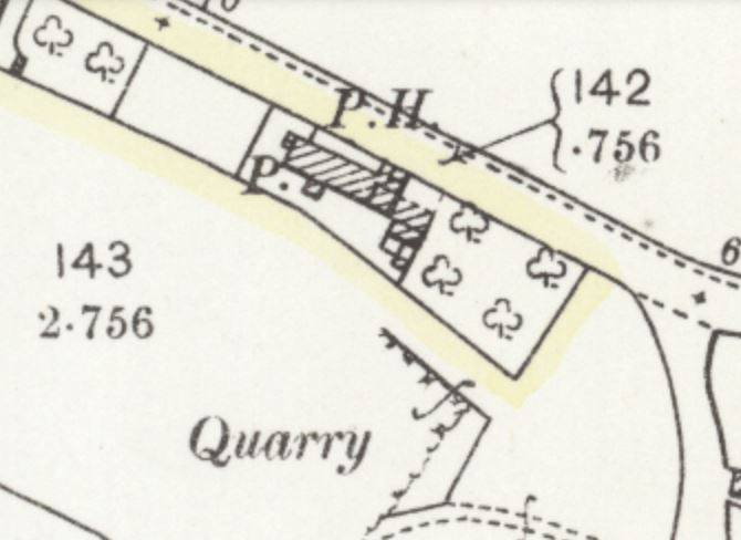 It is likely that the building circled is Mason's cottage, and given it's name it was probably occupied by workers in the quarry which lay immediately to the rear of the plot.