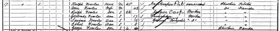 Ann Fowles (nee Ince) was the daughter of William Ince, who was a neighbour and Stone Mason of Farndon