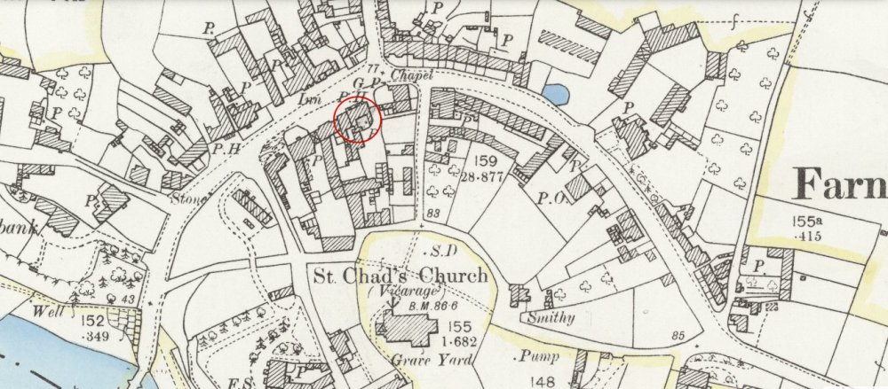 Map of 1897, The Raven circled (the present building)