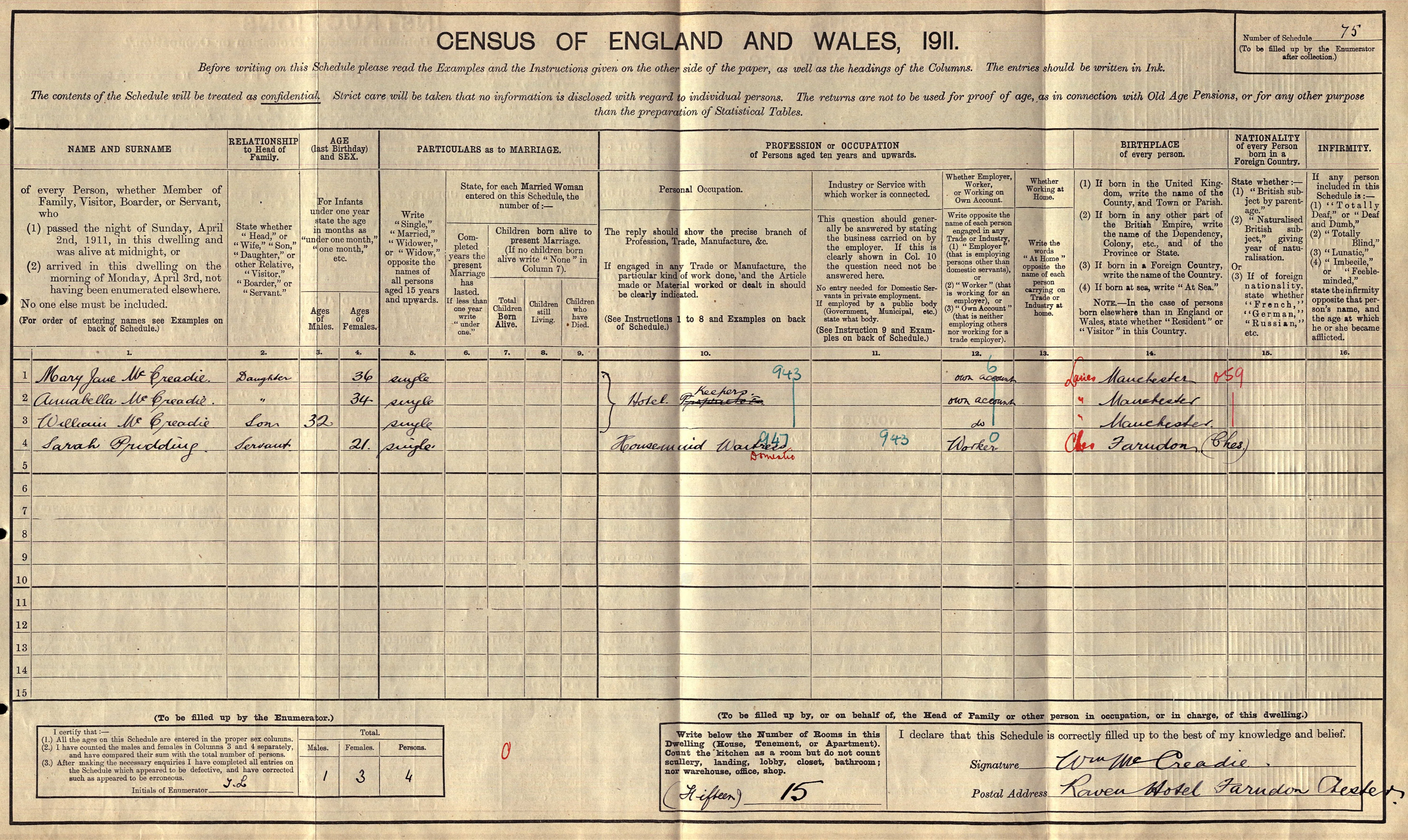 1911 Census - The McCreadie family|