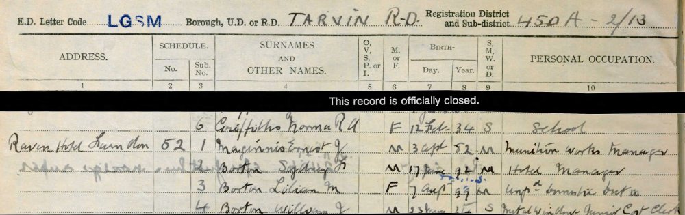 The 1939 Census - Sydney Barton, Hotel Manager