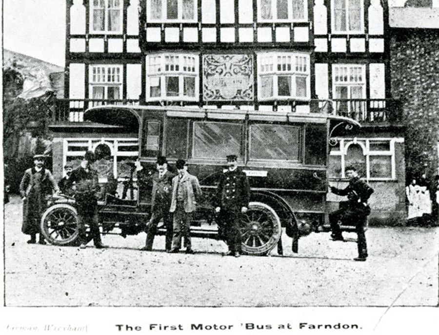 The first motorbus leaving The Raven c.1910