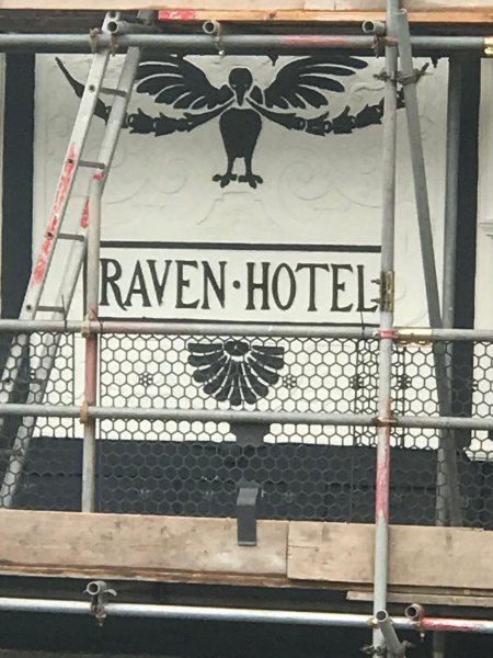 The welcome restoration of the original sign of The Raven (pictured Summer 2021).