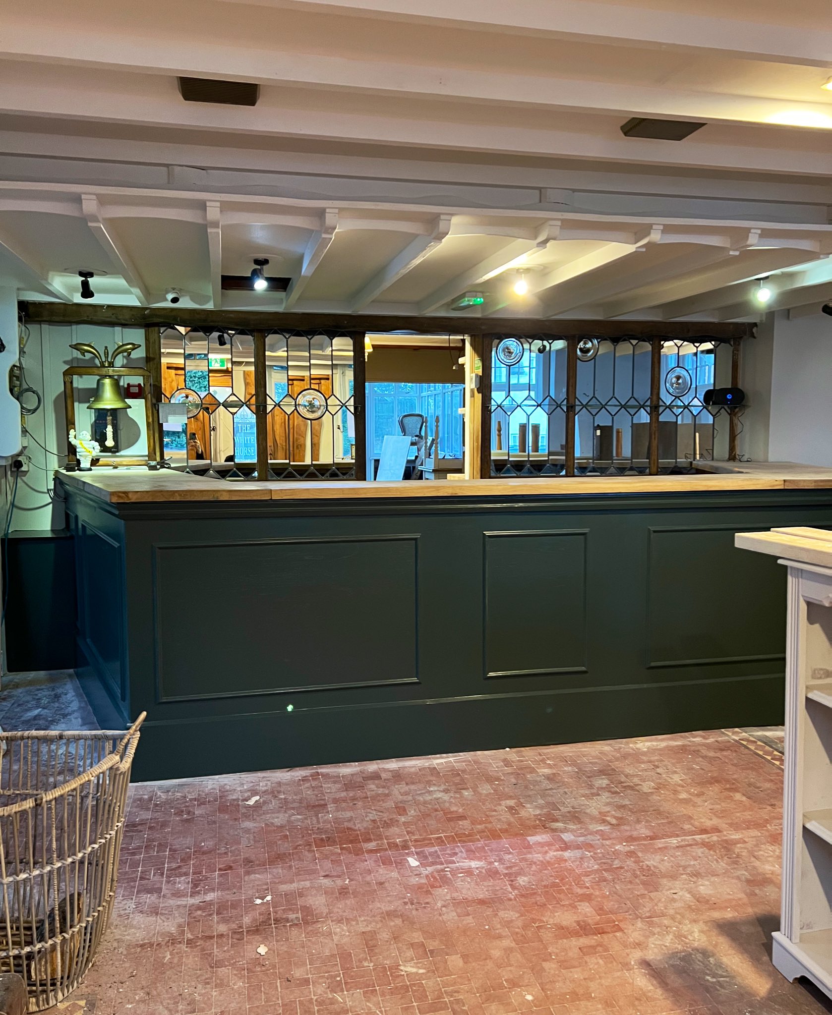Matt is Matt Shaw, Gary’s managing director of his company Elite Bistros, and when I arrive at the pub, he’s got some pliers in his hand and he’s bending some metal beading behind the bar. Matt also plumbed in the new loos, and knows everything from electrics to kitchen fitting, the equipment for which is going to take the lion’s share of the budget.