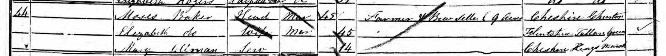 1871 Census - Moses Baker and Elizabeth Baker, Farmer 11 ½ acres, Beerseller of Churton