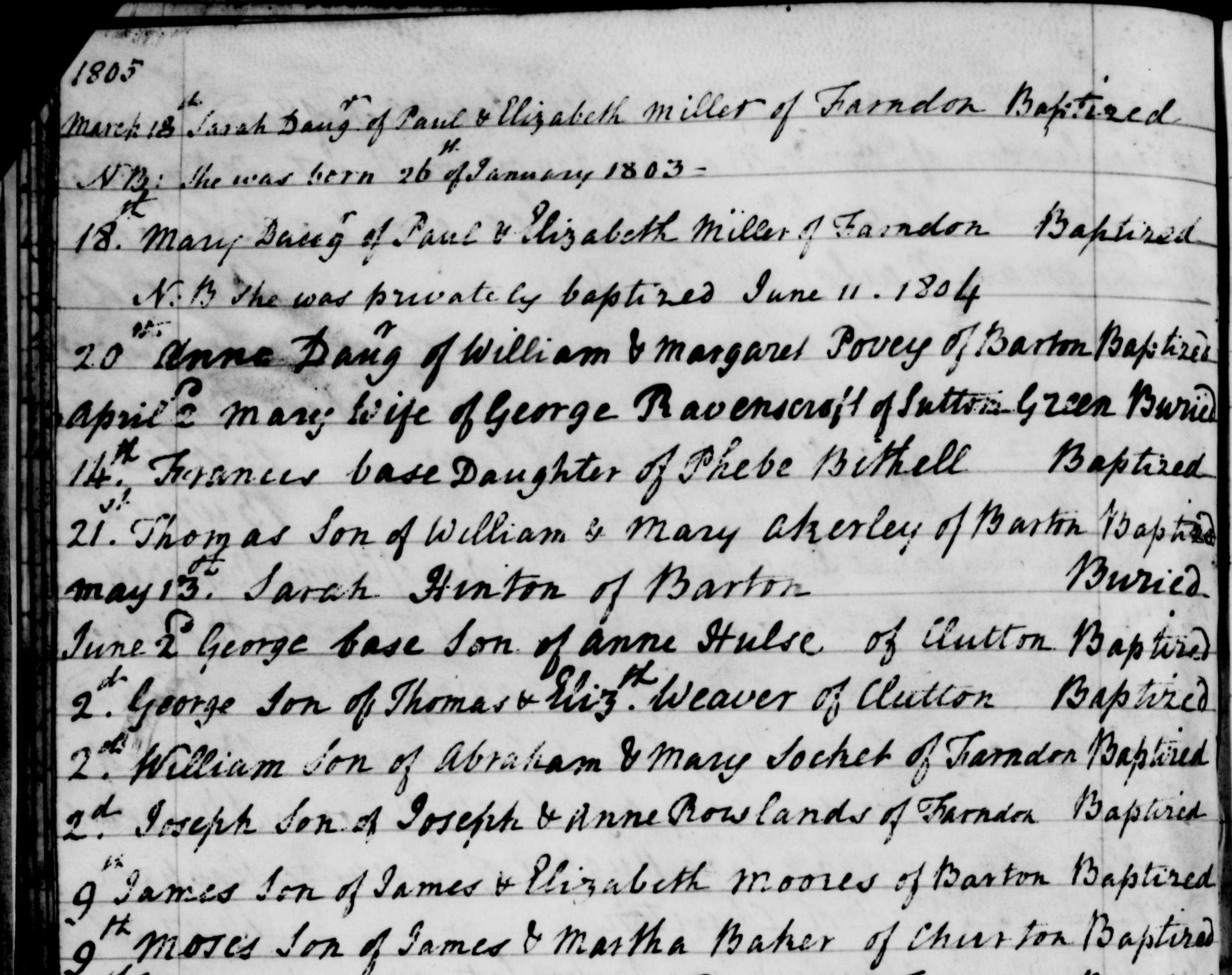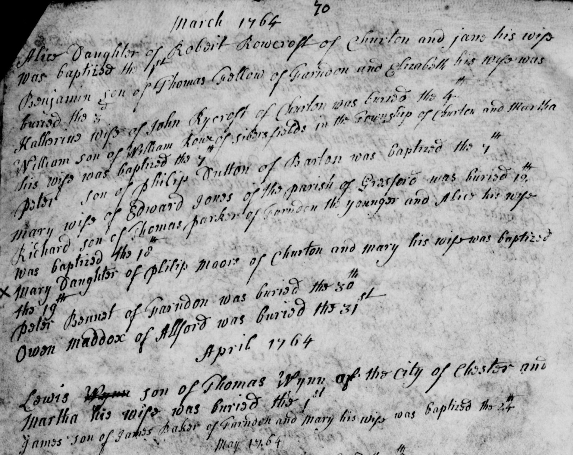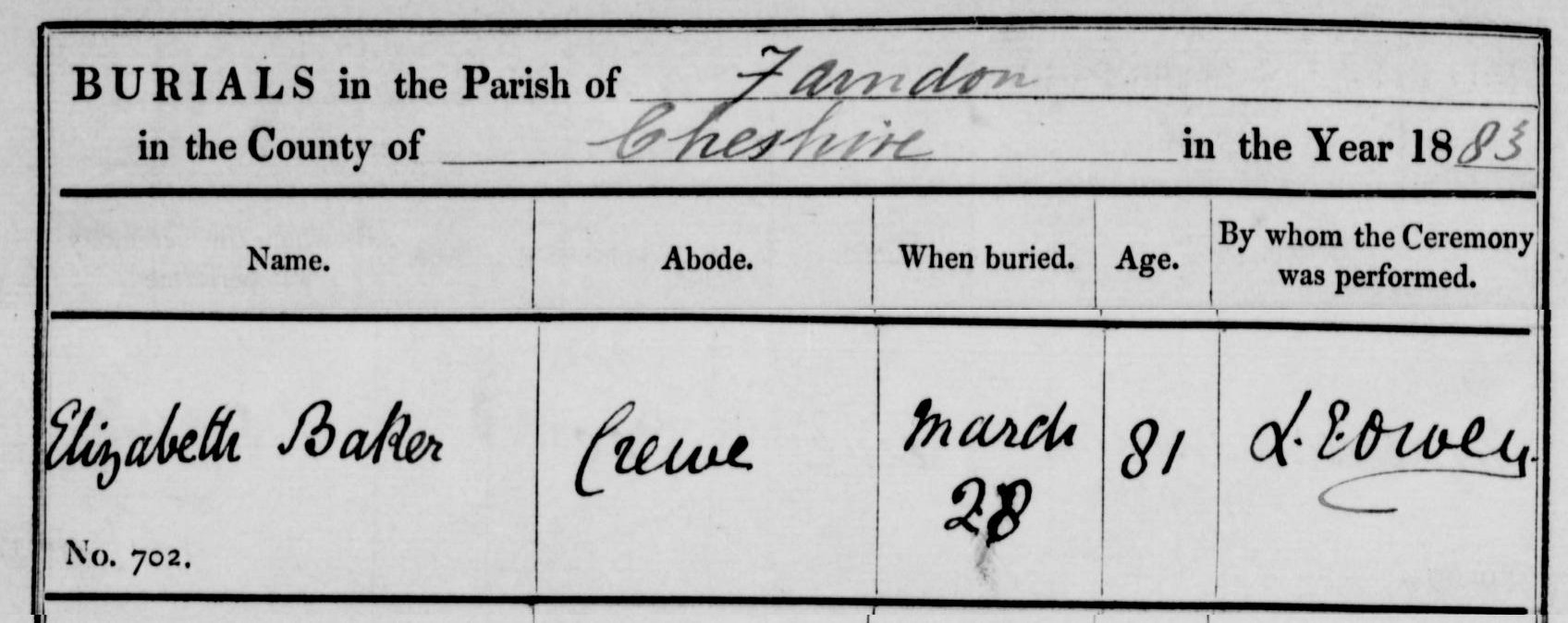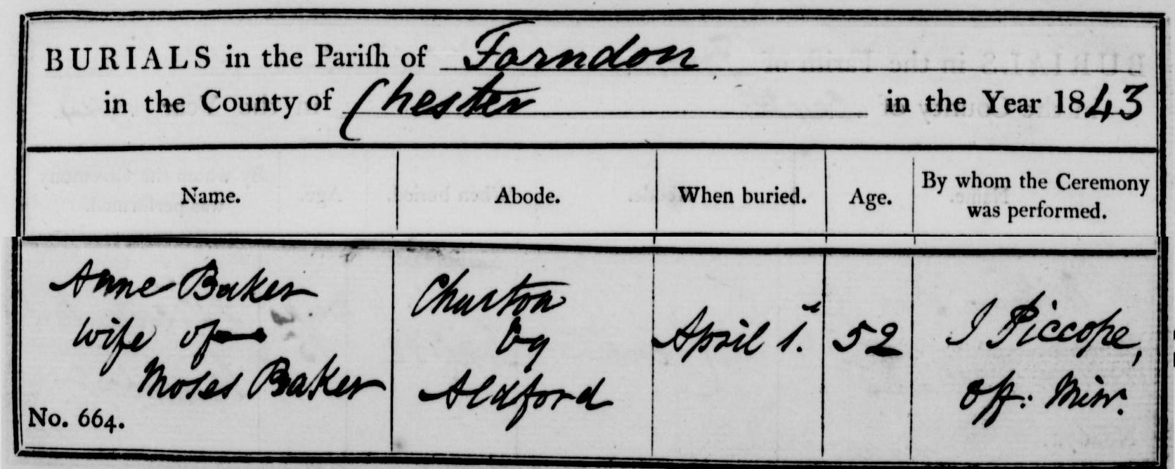 By 1871, Moses was farming 11½ acres and still running the White Horse Beerhouse with Elizabeth. However, the long, four decade tenancy of Moses Baker came to an end in September 1873, when he passed away aged sixty-eight and was interred on 16 September in St Chad’s churchyard in nearby Farndon.