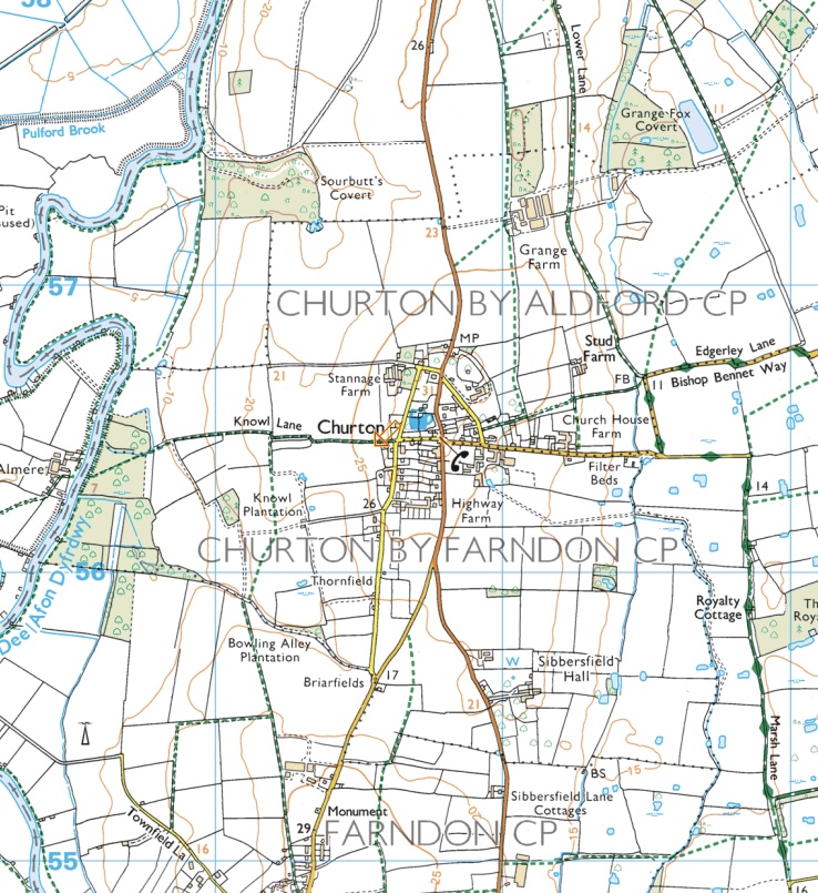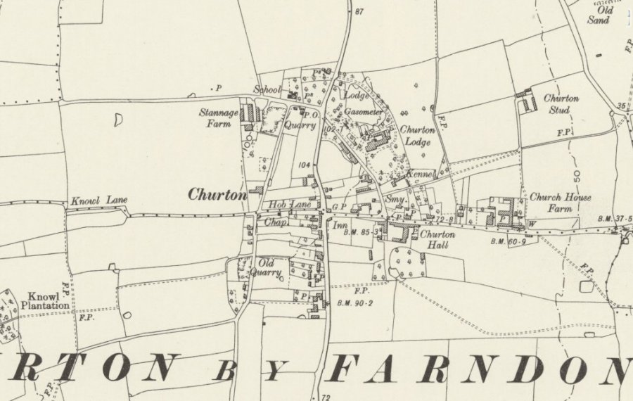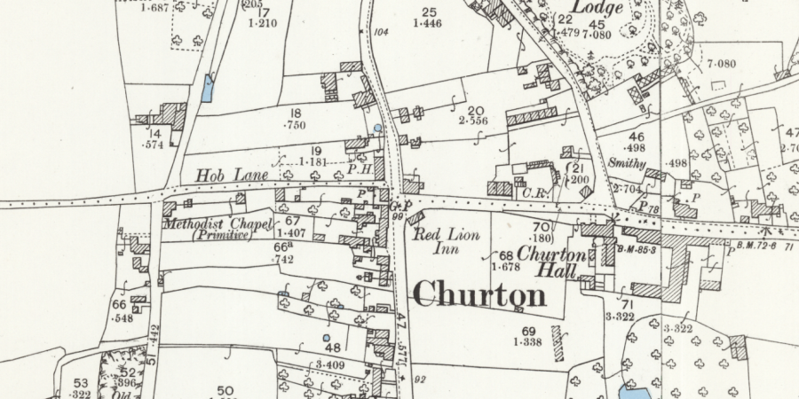 Churton Village 1897, showing the old roadside pub marked P.H.