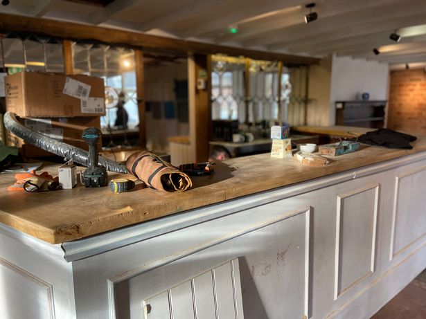 So, with that in mind, the pub has been brought together with a host of reclaimed materials, begged, borrowed, though hopefully not stolen. Like a pair of chandeliers second hand from Widnes, while the wood for the bar was bought from a lady in Southport off Facebook Marketplace.