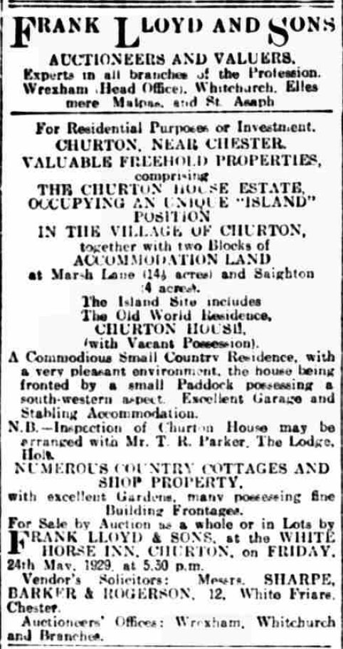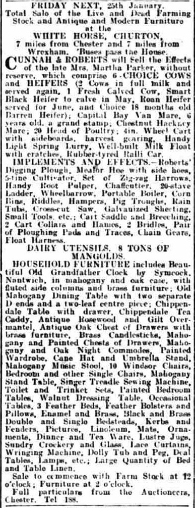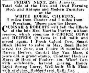An auction held at the White Horse Cheshire Observer, 18 May 1929 |