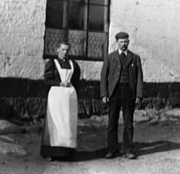 James Parker and Martha Parker outside the White Horse Inn c.1895, with Edgar Clubbe standing at the door