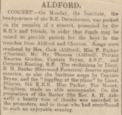 Aldford concert, Chester Chronicle, 8 December 1917 |