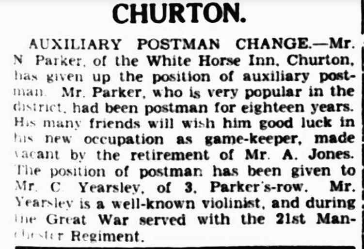 Postman Noah Parker retires, Cheshire Observer 12 February 1938