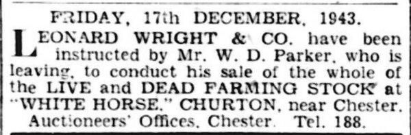 W D Parker leaving the White Horse, Cheshire Observer, 27 November 1943