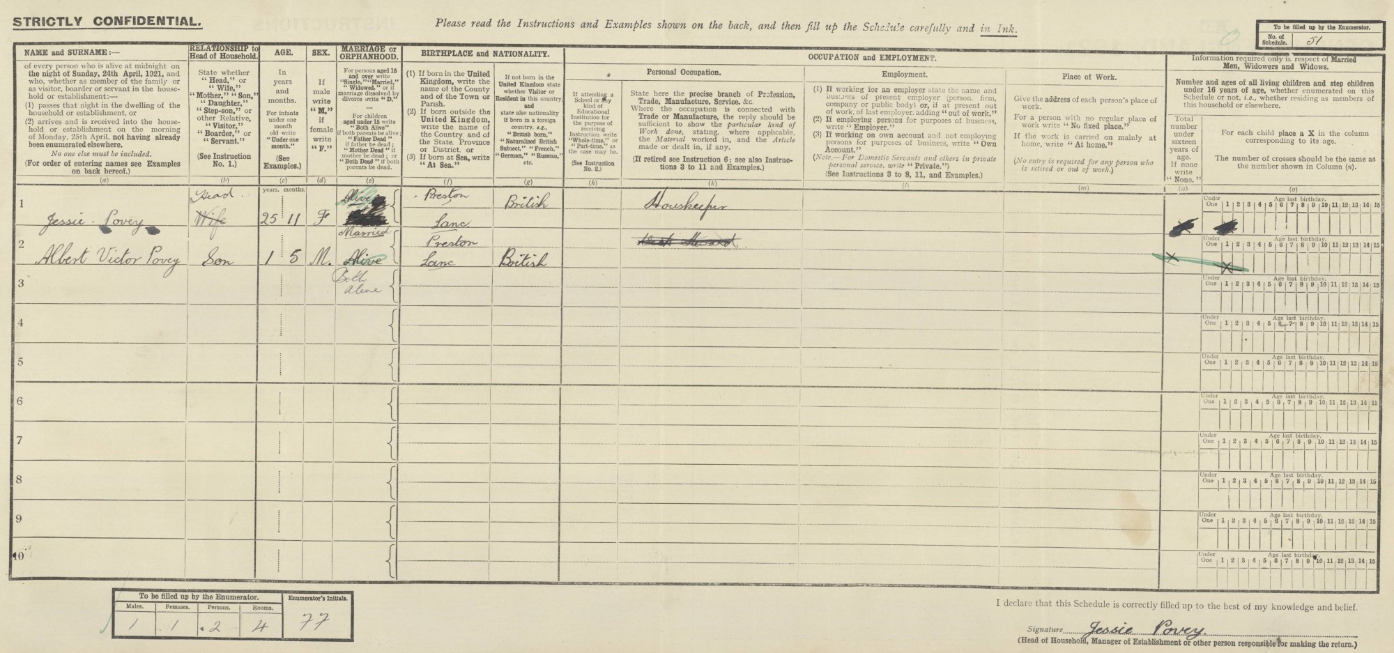 1921 census Jessie and Albert Povey jnr. Albert Povey snr was away at sea.