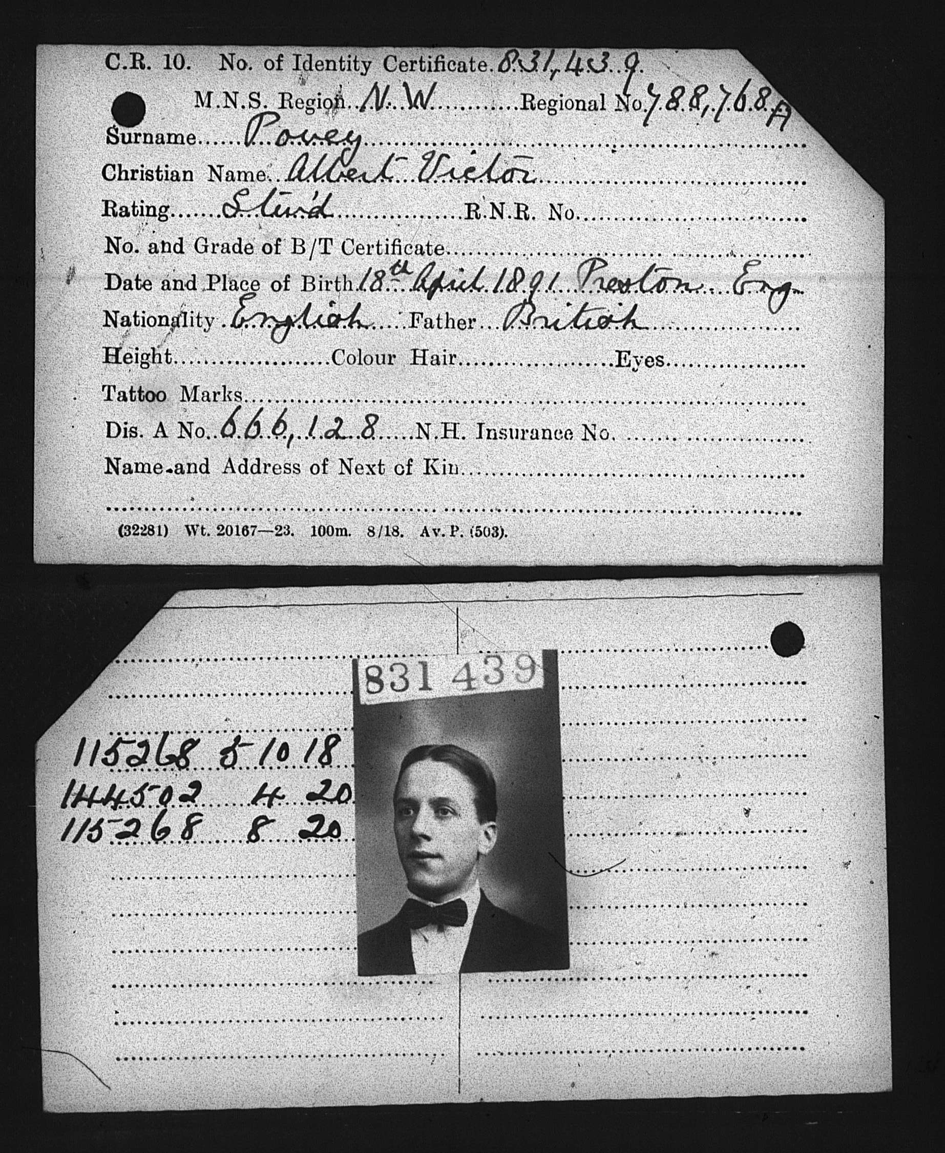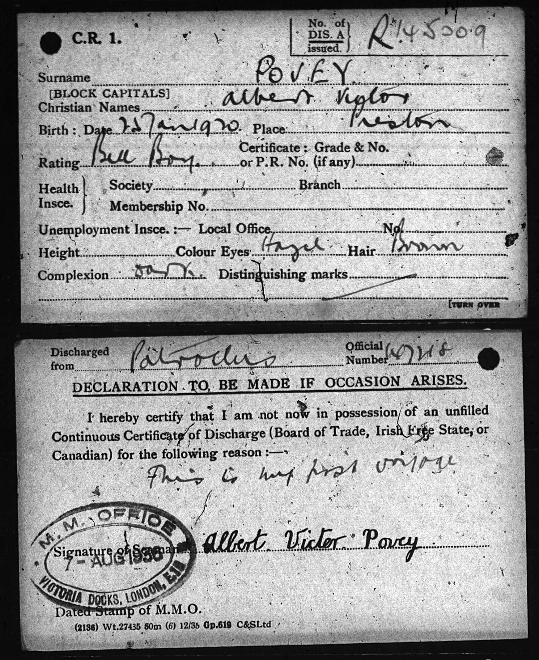 After the Parker family’s long residency to an end in 1943 after a period of almost sixty years, the next licencee was Jessie Povey. She and her family were from Preston, her husband Albert Victor Povey who had served in the Merchant Navy since the First World War. They married just afterwards, and her son Albert Victor junior was born in 1920, and Cyril in 1926. By 1936 young Albert had also signed up for the Merchant Navy. In 1939 they had moved from Preston to Rosedale Avenue in Crosby, no doubt for Albert to be closer to his employers and the main port of arrival and departure. Albert snr was discharged from the Navy shortly after having been serving on the MV Adda.