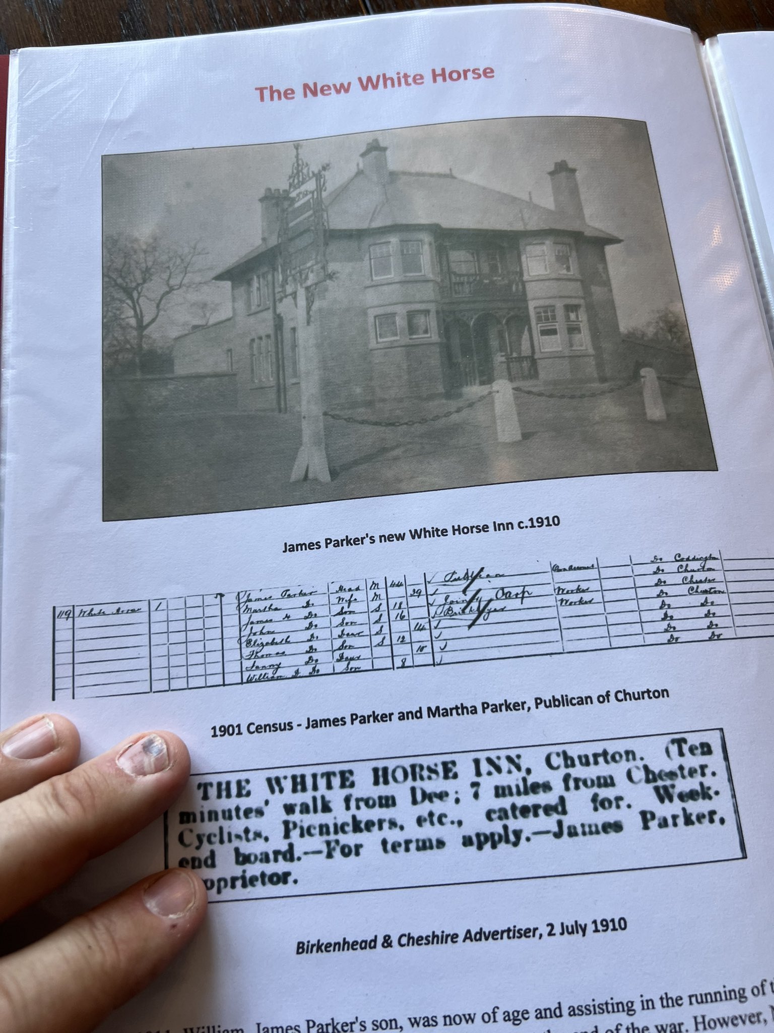Elizabeth carried on alone for a short time at the White Horse, before she moved to Crewe-by-Farndon, probably to be cared for in her last years by relatives. By the terms of the will, as James Parker could not yet inherit during her lifetime, temporary licensees, Laurence and Martha Thomas, were taken on to run the White Horse.