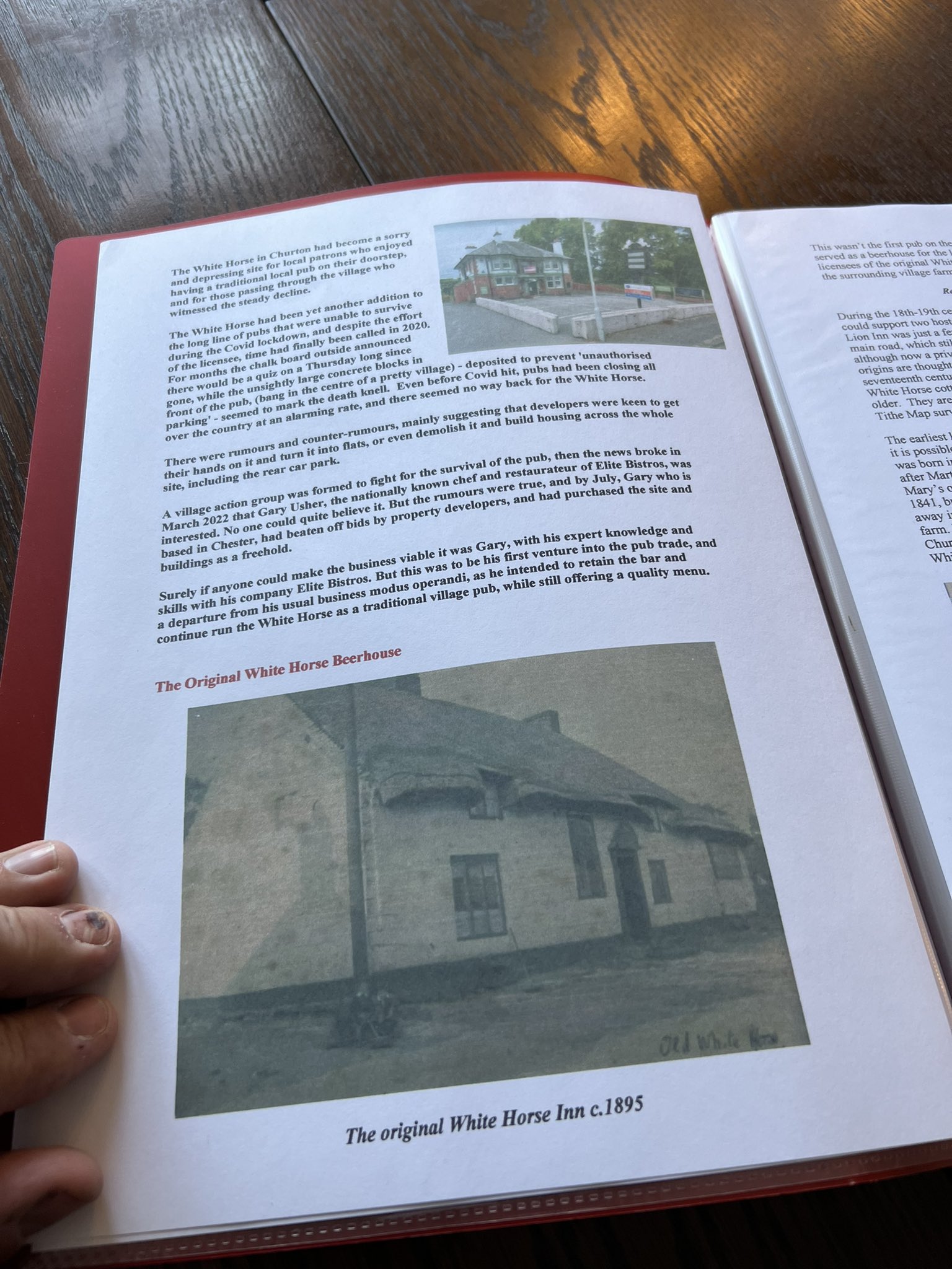 Surely if anyone could make the business viable it was Gary, with his expert knowledge and skills with his company Elite Bistros. But this was to be his first venture into the pub trade, and a departure from his usual business modus operandi, as he intended to retain the bar and continue run the White Horse as a traditional village pub, while still offering a quality menu.