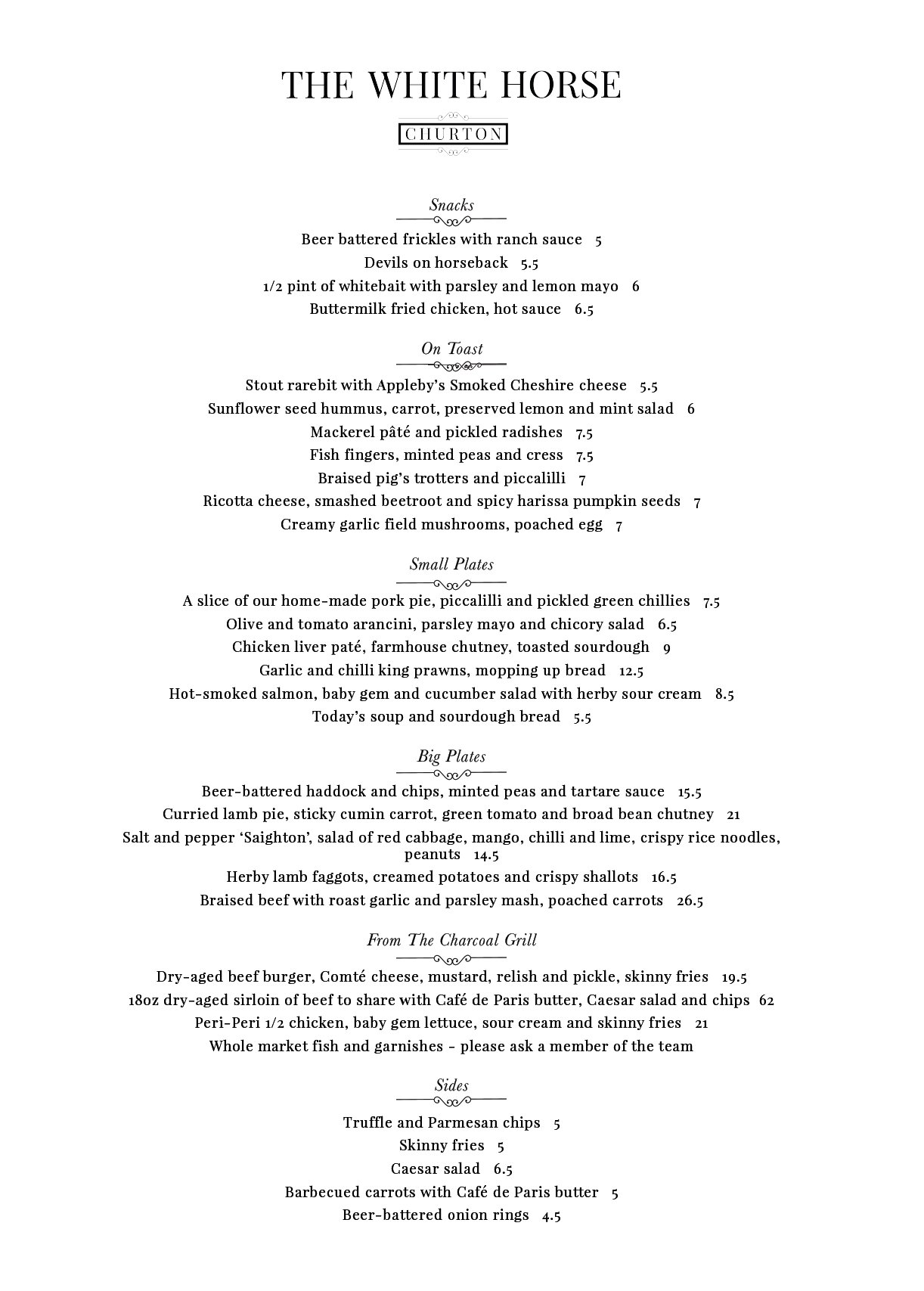 "Our plans at the White Horse are pretty simple, we want to serve great drinks, delicious unpretentious food by a team that love what they do. I'm super keen to hear what the local community like."