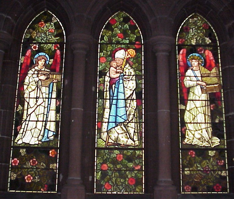 The central window depicting St.Nicholas was designed by Sir E Burne-Jones and the two windows either side featuring the Angels were actually designed by William Morris himself.