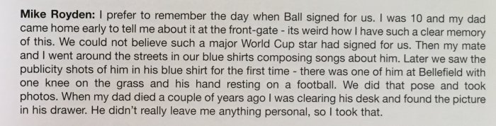 Great to meet up again and catch up with old friend David France who had travelled (yet again) from his home in America to be at Goodison. (Dr France OBE, aka 'Dr Everton', created the incredibleThe Everton Collection and also founded the Everton FC Heritage Society). |
