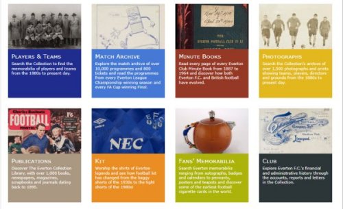 Memorabilia from the Everton Collection is often put on exhibition from time to time in local museums, Liverpool Central Library and Everton FC retail shops, while other items are exhibited at Goodison Park.Use by Researchers